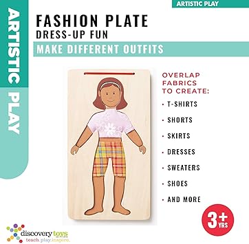 Amazon Com Discovery Toys Fashion Plate Dress Up Fabric Swatches Wood Doll With Changeable Heads Toys Games